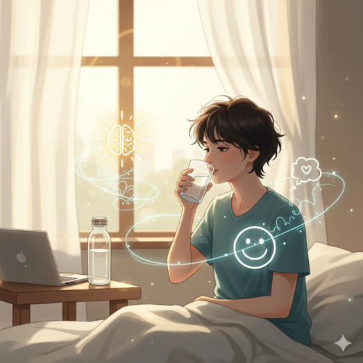 Drinking a glass of water when you first wake up and keeping water near you all day is like giving your brain the best fuel. It helps you stay sharp, focused, and in a better mood!